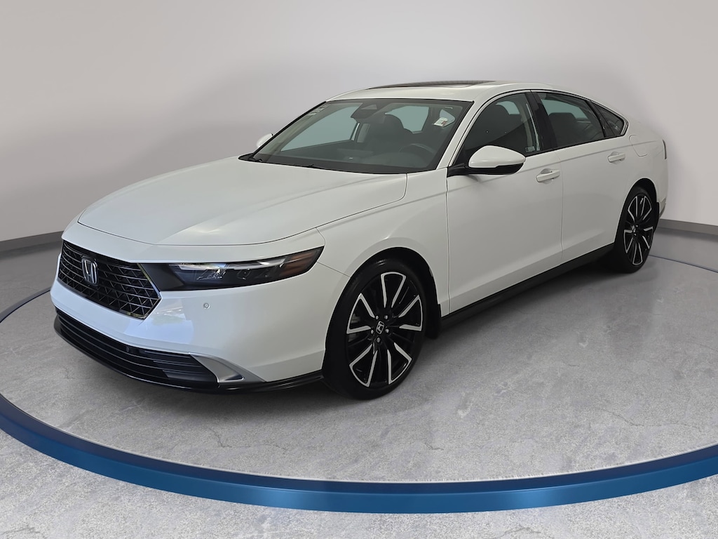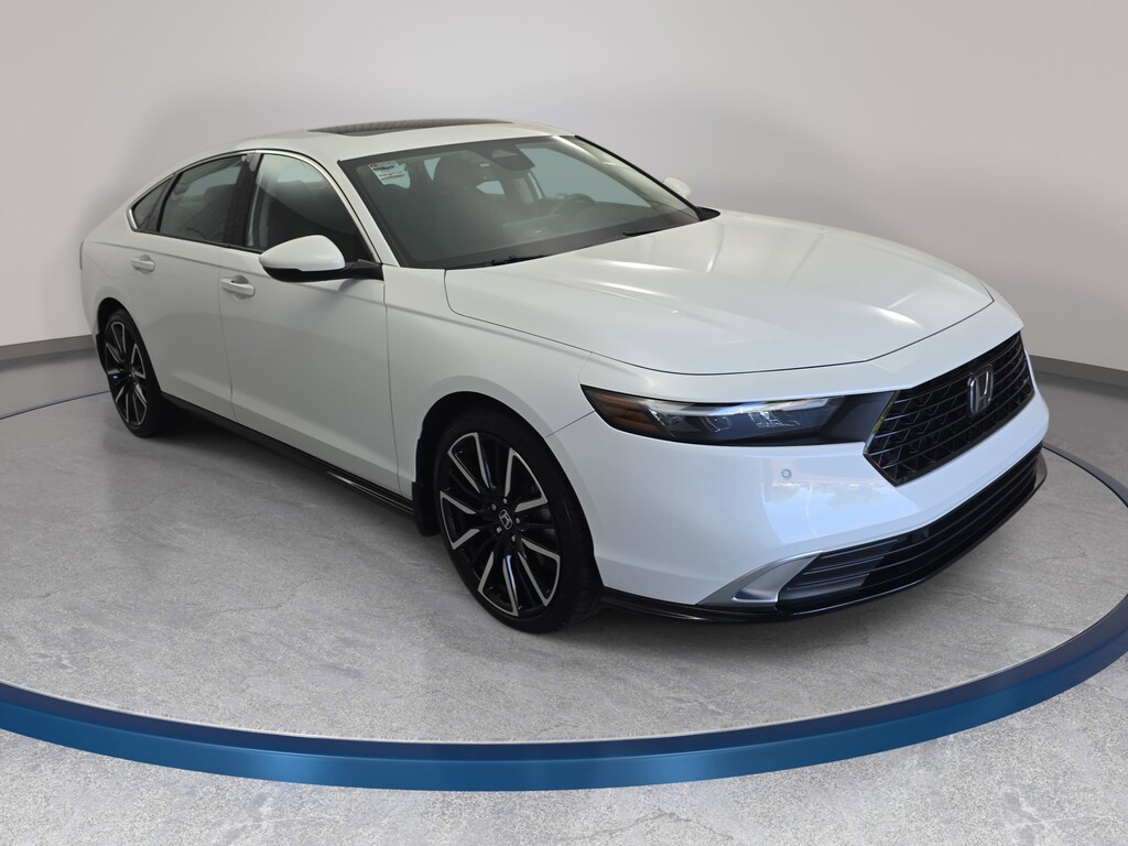 Clean CARFAX. CARFAX One-Owner. Certified. Platinum White 2023 Honda Accord Hybrid Touring FWD eCVT 2.0L 16V DOHC 12 Speakers, 4-Wheel Disc Brakes, ABS brakes, Adaptive suspension, Air Conditioning, AM/FM radio, Apple CarPlay/Android Auto, Auto High-beam Headlights, Auto-dimming Rear-View mirror, Automatic temperature control, Bose Premium Sound System, Brake assist, Bumpers: body-color, Delay-off headlights, Electronic Stability Control, Exterior Parking Camera Rear, Four wheel independent suspension, Front Bucket Seats, Front dual zone A/C, Fully automatic headlights, Heads-Up Display, Heated & Ventilated Front Bucket Seats, Heated door mirrors, Heated front seats, Heated rear seats, Lane departure: Lane Keeping Assist System (LKAS) active, Leather-Trimmed Seat Trim, Memory seat, Navigation system: Google Built-In, Power door mirrors, Power driver seat, Power moonroof, Power steering, Power windows, Radio data system, Rear window defroster, Remote keyless entry, Speed-sensing steering, Steering wheel mounted audio controls, Traction control, Turn signal indicator mirrors.