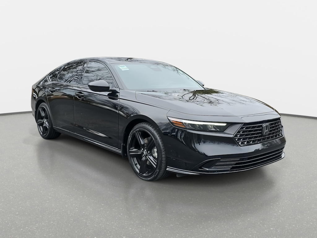 Clean CARFAX. CARFAX One-Owner. Certified. Crystal Black Pearl 2023 Honda Accord Hybrid Sport-L FWD eCVT 2.0L 16V DOHC 4-Wheel Disc Brakes, 8 Speakers, ABS brakes, Adaptive Cruise Control: Adaptive Cruise Control (ACC) with Low-Speed Follow, Air Conditioning, Alloy wheels, Apple CarPlay/Android Auto, Auto High-beam Headlights, Automatic temperature control, Brake assist, Delay-off headlights, Electronic Stability Control, Exterior Parking Camera Rear, Four wheel independent suspension, Front dual zone A/C, Heated Front Bucket Seats, Heated front seats, Lane departure: Lane Keeping Assist System (LKAS) active, Memory seat, Power driver seat, Power moonroof, Radio: 180-Watt Audio System, Remote keyless entry, Steering wheel mounted audio controls, Wheels: 19" x 8.5J Matte Berlina Black.