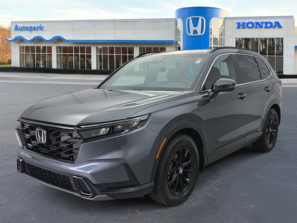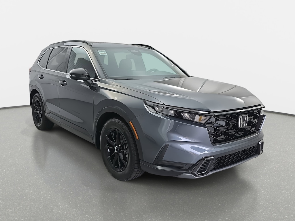 Clean CARFAX. CARFAX One-Owner. Certified. Meteorite Gray Metallic 2023 Honda CR-V Hybrid Sport FWD eCVT 2.0L I4 DOHC 16V 4-Wheel Disc Brakes, 6 Speakers, ABS brakes, Adaptive Cruise Control: Adaptive Cruise Control (ACC) with Low-Speed Follow, Air Conditioning, Apple CarPlay/Android Auto, Auto High-beam Headlights, Automatic temperature control, Brake assist, Delay-off headlights, Dual front impact airbags, Electronic Stability Control, Exterior Parking Camera Rear, Four wheel independent suspension, Front dual zone A/C, Fully automatic headlights, Heated door mirrors, Heated Front Bucket Seats, Outside temperature display, Power driver seat, Power moonroof, Power steering, Radio: 240-Watt AM/FM Audio System, Remote keyless entry, Speed-sensing steering, Steering wheel mounted audio controls, Telescoping steering wheel, Tilt steering wheel, Wheels: 18" Berlina Black Alloy.