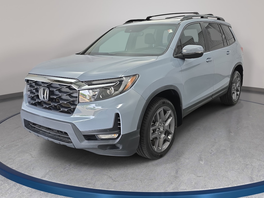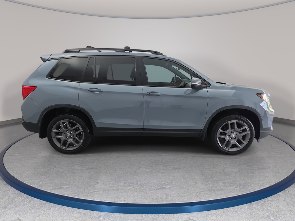 Clean CARFAX. CARFAX One-Owner. Certified. Sonic Gray Pearl 2023 Honda Passport EX-L AWD 9-Speed Automatic 3.5L V6 24V SOHC i-VTEC 4-Wheel Disc Brakes, 7 Speakers, A/V remote: CabinControl, ABS brakes, Air Conditioning, Alloy wheels, AM/FM radio: SiriusXM, Apple CarPlay/Android Auto, Auto High-beam Headlights, Auto-dimming Rear-View mirror, Automatic temperature control, Blind Spot Information (BSI) System warning, Brake assist, Delay-off headlights, Driver door bin, Driver vanity mirror, Driver's Seat Mounted Armrest, Electronic Stability Control, Exterior Parking Camera Rear, Four wheel independent suspension, Front Bucket Seats, Front Center Armrest, Front dual zone A/C, Front reading lights, Fully automatic headlights, Garage door transmitter: HomeLink, Heated Front Bucket Seats, Heated front seats, Illuminated entry, Lane departure: Lane Keeping Assist System (LKAS) active, Occupant sensing airbag, Outside temperature display, Overhead airbag, Power driver seat, Power Liftgate, Power moonroof, Power steering, Power windows, Rear air conditioning, Remote keyless entry, Speed-sensing steering, Split folding rear seat, Steering wheel mounted audio controls, Traction control, Wheels: 20" Pewter Gray Alloy.