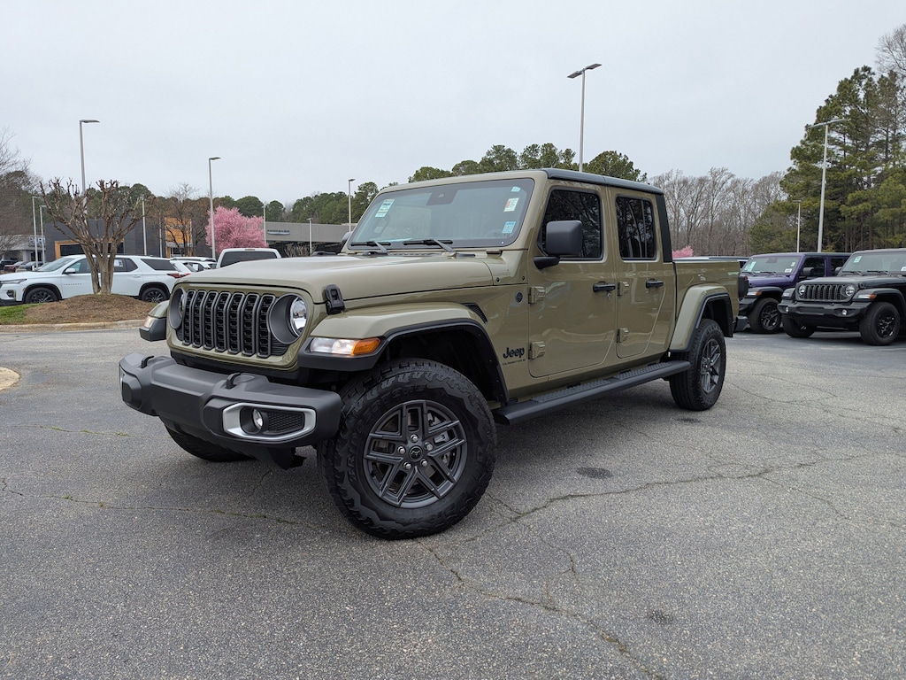 Certified. 41 2025 Jeep Gladiator Sport S 4WD 8-Speed Automatic 3.6L V6 24V VVT 110 MPH Vehicle Max Speed Calibration, 12.3" Touchscreen Display, 4.10 Rear Axle Ratio, Advanced Brake Assist, Anti-Spin Differential Rear Axle, Apple CarPlay/Android Auto, Auto High Beam Headlamp Control, Automatic Headlamps, Black Molded-In-Color Fender Flares (2-Piece), Blind Spot & Cross Path Detection, Class IV Receiver Hitch, Convenience Group, Conventional Differential Front Axle, Corning Gorilla Glass, Dana M210 Wide Front Axle, Dana M220 Wide Rear Axle, Daytime Running Lamp System, Deep Tint Sunscreen Windows, Enhanced Adaptive Cruise Control, Front Door Locks 2-Door Passive Entry, Full Speed Forward Collision Warning Plus, Heated Front Seats, Heated Steering Wheel, Heavy-Duty Engine Cooling, LED Taillamps, Max Tow Package w/4.10 Axle Ratio, Mopar Black Tubular Side Steps, Normal Duty Plus Suspension, Outside temperature display, ParkSense Rear Park Assist System, ParkView Rear Back-Up Camera, Power Heated Mirrors, Premium Wrapped Steering Wheel, Quick Order Package 24S Sport S, Radio: Uconnect 5 w/12.3" Display, Remote keyless entry, Remote Start System, Safety Group, Security Alarm, Sun Visors w/Illuminated Vanity Mirrors, Universal Garage Door Opener, Wheels: 17" x 7.5" Gray.