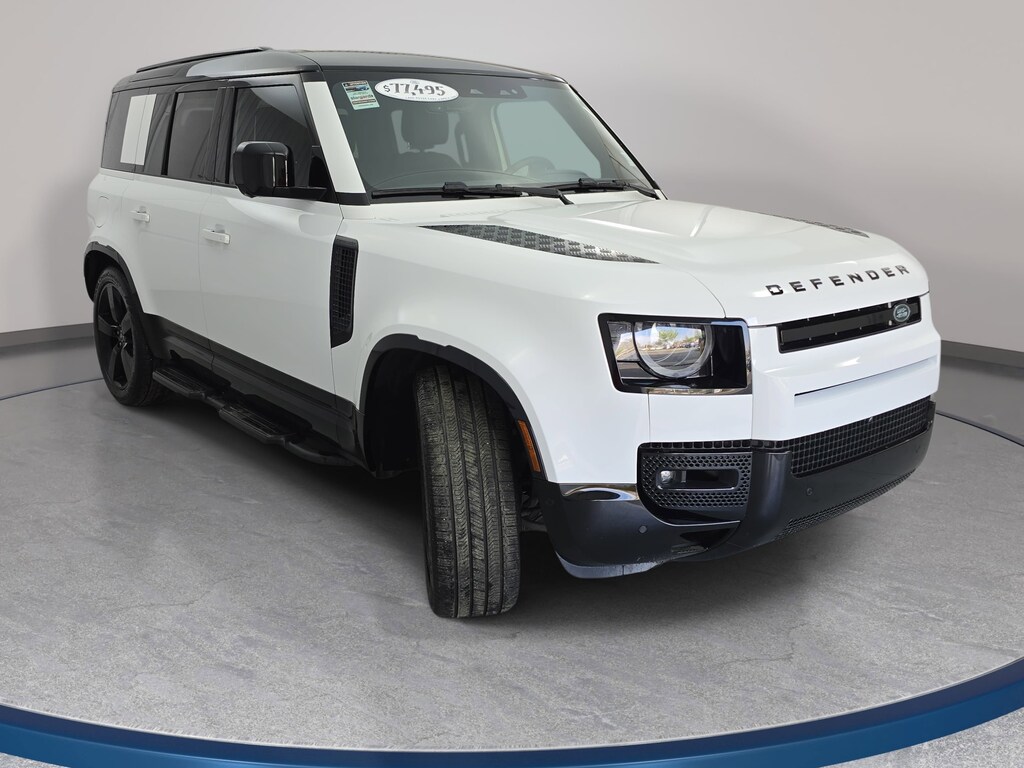 Certified. Fuji White 2025 LAND ROVER Defender 110 X-Dynamic SE AWD 8-Speed Automatic 3.0L I6 14-Way Heated and Cooled Electric Memory Front Seats, Adaptive Dynamics, Air Suspension Pack, Black Fixed Side Steps, Body-Colored Spare Wheel Cover, Cold Climate Package, Electronic Air Suspension, Extended Black Exterior Pack, Extended Leather Upgrade, Headlight Power Wash, Heated Washer Jets, Heated Windscreen, Leather Gearshift, Leather Wrapped Steering Wheel with PU Driver Airbag, Premium Interior Protection and Storage Package (5 Seat), Premium Upgrade Interior Pack, Rear Seat Convenience Pack, Tow Hitch Receiver, Wheels: 20" Satin Dark Grey Style 5098.