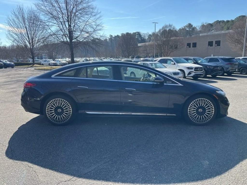 Certified. Dark Blue 2022 Mercedes-Benz EQS 580 4MATIC® Electric Motor 15 Speakers, 4-Wheel Disc Brakes, 4-Zone Climate Control, ABS brakes, Adaptive suspension, Air Conditioning, AIR-BALANCE Package, Auto High-beam Headlights, Auto tilt-away steering wheel, Auto-dimming door mirrors, Auto-dimming Rear-View mirror, Auto-leveling suspension, Automatic temperature control, Brake assist, Bumpers: body-color, Compass, Delay-off headlights, Driver door bin, Driver vanity mirror, Dual front impact airbags, Dual front side impact airbags, Electronic Stability Control, Emergency communication system: eCall Emergency System, Exclusive Trim Package, Exterior Parking Camera Rear, Four wheel independent suspension, Front anti-roll bar, Front Bucket Seats, Front Center Armrest, Front dual zone A/C, Front reading lights, Garage door transmitter: HomeLink, Genuine wood console insert, Genuine wood door panel insert, Head restraints memory, Head-Up Display, Heated & Ventilated Power Front Seats, Heated door mirrors, Heated front seats, Heated Rear Seats, Heated Steering Wheel, Heated Windshield, Heated Windshield Washer System, HVAC memory, Illuminated entry, Knee airbag, Leather Seat Trim, Leather steering wheel, Low tire pressure warning, MB Apps/Apple CarPlay/Android Auto, Memory seat, Multi-Contour Front Seats w/Massage Feature, Navigation System, Occupant sensing airbag, Outside temperature display, Overhead airbag, Overhead console, Panic alarm, Passenger door bin, Passenger vanity mirror, Power adjustable front head restraints, Power door mirrors, Power driver seat, Power Liftgate, Power moonroof: Panorama, Power passenger seat, Power steering, Power windows, Premium audio system: MBUX, Premium Trim Package, Radio data system, Radio: Burmester® 710W Sound System, Rain sensing wipers, Rapid Heating Front Seats, Rear anti-roll bar, Rear reading lights, Rear seat center armrest, Rear window defroster, Remote keyless entry, Security system, Speed control, Speed-sensing steering, Speed-Sensitive Wipers, Split folding rear seat, Spoiler, Steering wheel memory, Steering wheel mounted audio controls, Telescoping steering wheel, Tilt steering wheel, Traction control, Trip computer, Turn signal indicator mirrors, Variably intermittent wipers, Ventilated front seats, Wheels: 21" x 9.5" AMG® Multi-Spoke, Winter Package.