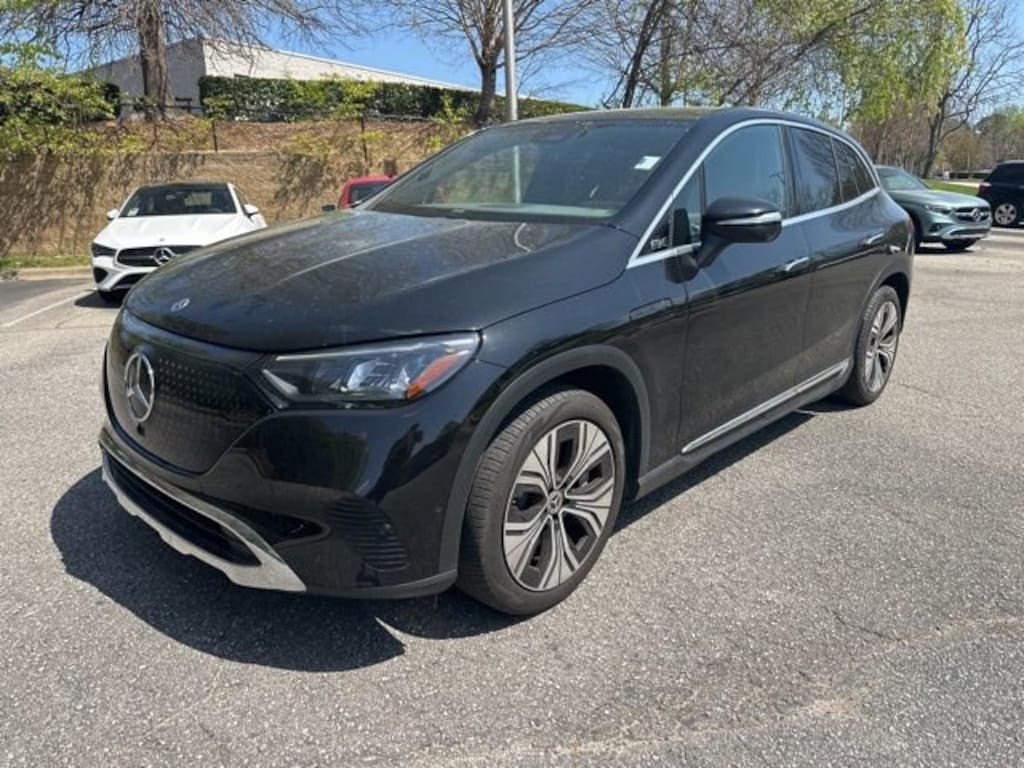 Certified. Obsidian Black Metallic 2023 Mercedes-Benz EQE 350 SUV 4MATIC® Electric Motor 15 Speakers, Apple CarPlay®/Android Auto®, Auto tilt-away steering wheel, Auto-dimming door mirrors, Auto-dimming Rear-View mirror, Bumpers: body-color, Burmester® Sound System, Driver door bin, Driver vanity mirror, Electronic Stability Control, Exterior Parking Camera Rear, Front Bucket Seats, Front Center Armrest, Front reading lights, Garage door transmitter: HomeLink, Heated door mirrors, Heated front seats, Heated Power Front Seats w/Memory, Illuminated entry, Leather steering wheel, MB-Tex Upholstery, MBUX EQ Navigation Services, MBUX Navigation, Memory seat, Outside temperature display, Overhead console, Passenger door bin, Passenger vanity mirror, Power door mirrors, Power driver seat, Power moonroof: Panorama, Power passenger seat, Power steering, Power windows, Premium audio system: MBUX, Premium Trim Package, Radio data system, Radio: MBUX Multimedia System, Rain sensing wipers, Rear reading lights, Rear seat center armrest, Rear window wiper, Remote keyless entry, Speed-Sensitive Wipers, Split folding rear seat, Spoiler, Steering wheel memory, Steering wheel mounted audio controls, Telescoping steering wheel, Tilt steering wheel, Trip computer, Turn signal indicator mirrors, Variably intermittent wipers, Wheels: 20" x 8.5J 5-Spoke w/Black Accents, Wireless Smartphone Integration.