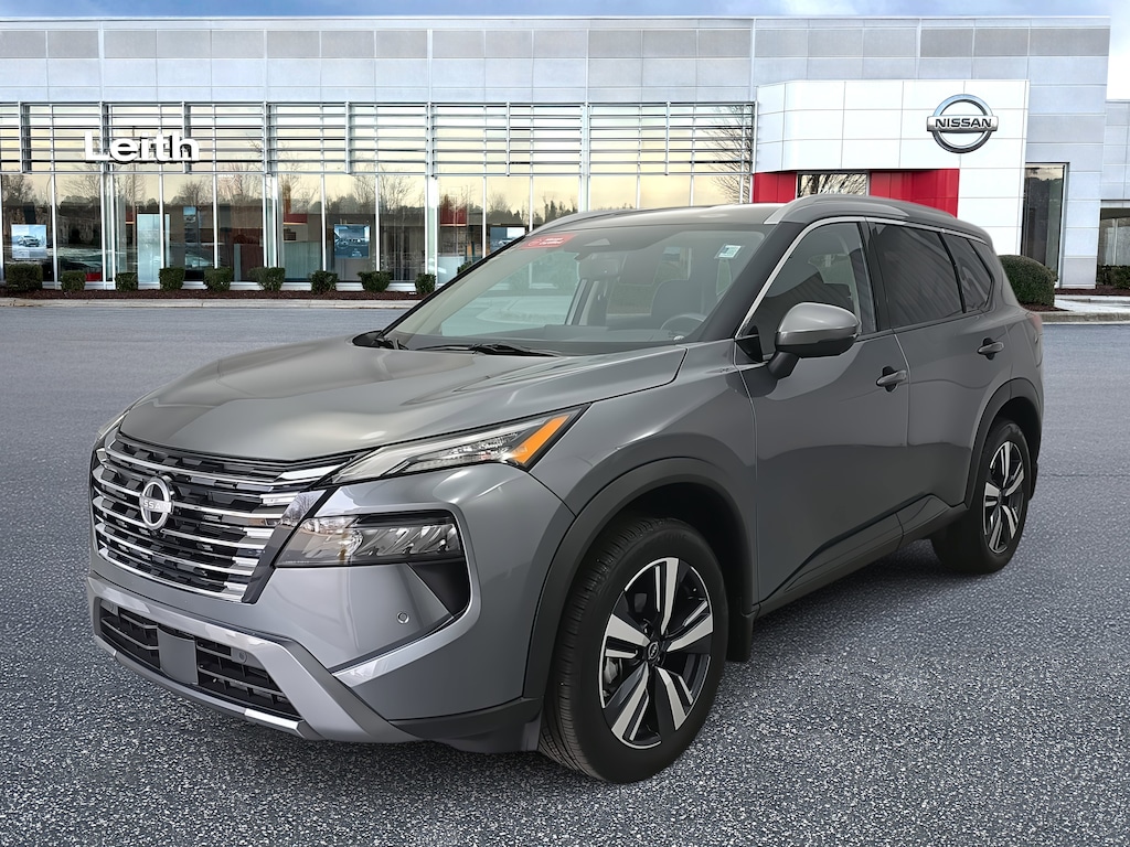 Certified. Gun Metallic 2024 Nissan Rogue SL FWD CVT with Xtronic 1.5L DOHC Bought Here, Serviced Here.