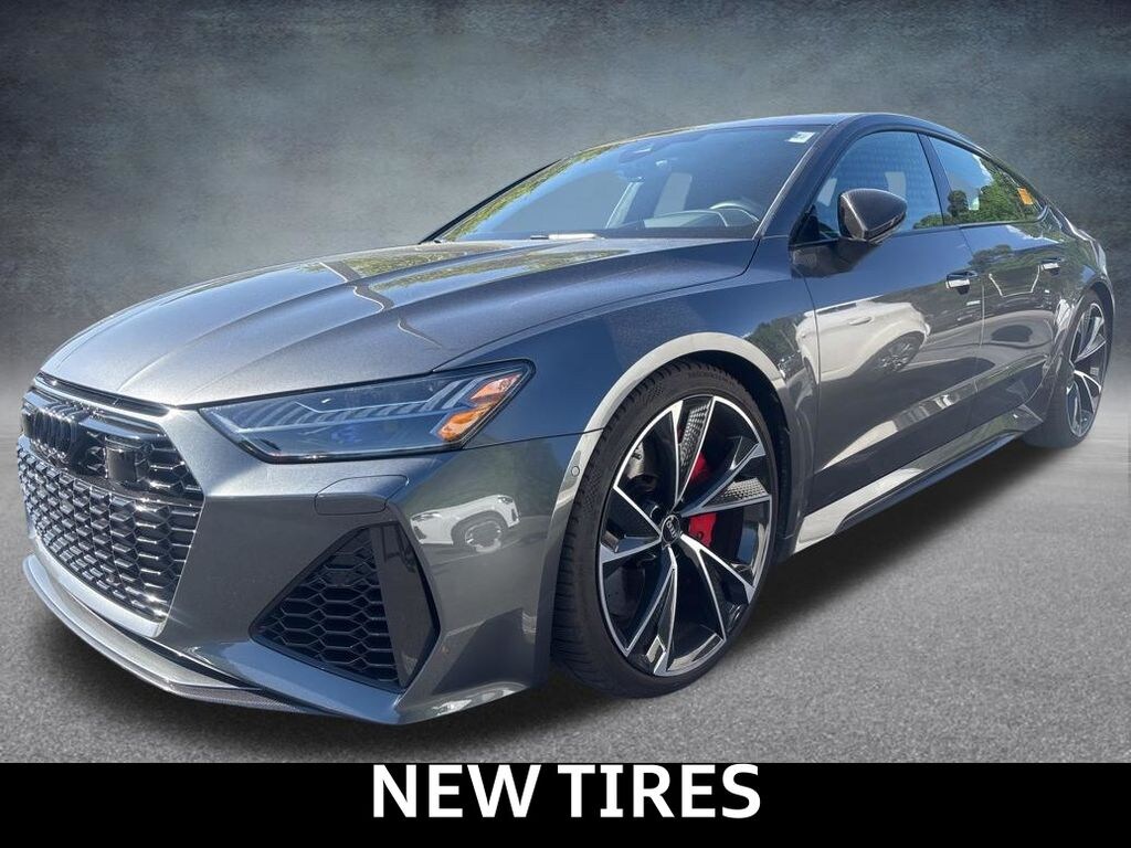 Daytona Gray 2021 Audi RS 7 4.0T quattro 8-Speed Automatic with Tiptronic 4.0L V8 Turbocharged DOHC 32V LEV3-ULEV125 591hp quattro CARFAX One-Owner. NEW TIRES, Features, Audi Active Lane Departure Warning, Audi Adaptive Cruise Assist w/Traffic Jam Assist, Audi Pre Sense Rear, Audi Side Assist w/Rear Cross Traffic Assist, Bang & Olufsen 3D Advanced Sound System, Black Optic Exterior Pkg, Carbon Exterior Mirror Housings, Carbon Optic Exterior Package, Carbon Optic Package, Driver Assistance Package, Extended Leather Package, Head-Up Display, Heated Rear Seats, Intersection Assist, Navigation system: MMI Navigation plus, Power Soft-Closing Doors, Red Ceramic Brakes, RS 7 Executive Package, Traffic Sign Recognition, Wheels: 22" 5-V-Spoke Structured Design Black.