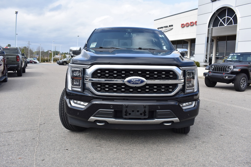 Clean CARFAX. CARFAX One-Owner. Agate Black Metallic 2023 Ford F-150 Platinum 4WD 10-Speed Automatic 3.5L V6 EcoBoost 20" Polished Aluminum Wheels, 360 Degree Camera, 4-Wheel Disc Brakes, 4x4 FX4 Off-Road Bodyside Decal, 8 Speakers, ABS brakes, Active Park Assist 2.0 Removal, Adjustable pedals, Air Conditioning, Alloy wheels, AM/FM radio: SiriusXM with 360L, Auto High-beam Headlights, Auto Start-Stop Removal (DISC), Auto tilt-away steering wheel, Auto-dimming door mirrors, Auto-dimming Rear-View mirror, Automatic temperature control, Bed Utility Package, BoxLink, Brake assist, Bumpers: body-color, Class IV Trailer Hitch Receiver, Compass, Delay-off headlights, Dual front impact airbags, Dual front side impact airbags, Electronic Locking w/3.55 Axle Ratio, Electronic Stability Control, Emergency communication system: SYNC 4 911 Assist, Equipment Group 701A High, Extended Range 36 Gallon Fuel Tank, Exterior Parking Camera Rear, Ford BlueCruise 1.0, Front anti-roll bar, Front dual zone A/C, Front fog lights, Front wheel independent suspension, Fully automatic headlights, FX4 Off-Road Package, Garage door transmitter, GVWR: 7,050 lbs Payload Package, Heated door mirrors, Heated front seats, Heated rear seats, Heated steering wheel, Hill Descent Control, Illuminated entry, Inclination/Intrusion Sensor Removal, Integrated Trailer Brake Controller, Interior Work Surface, LED Sideview Mirror Spotlights, Low tire pressure warning, Max Trailer Tow Package, Memory seat, Monotube Rear Shocks, Multicontour Seats w/Active Motion Removal, Occupant sensing airbag, Off-Road Tuned Front Shock Absorbers, Outside temperature display, Overhead airbag, Panic alarm, Pedal memory, Power door mirrors, Power driver seat, Power passenger seat, Power steering, Power windows, Pro Power Onboard - 2KW, Pro Trailer Backup Assist & Pro Trailer Hitch Assist, Radio data system, Radio: B&O Sound System by Bang & Olufsen, Radio: B&O Unleashed Sound System by Bang & Olufsen, Rain sensing wipers, Rear step bumper, Rear window defroster, Remote keyless entry, Rock Crawl Mode, Security system, Speed control, Speed-sensing steering, Split folding rear seat, Steering Wheel Heat Removal (DISC), Steering wheel memory, Steering wheel mounted audio controls, SYNC 4 w/Enhanced Voice Recognition, Tachometer, Tailgate Step w/Tailgate Work Surface, Telescoping steering wheel, Tilt steering wheel, Traction control, Tray Style Floor Liner, Trip computer, Turn signal indicator mirrors, Twin Panel Moonroof, Variably intermittent wipers, Ventilated front seats, Voltmeter.