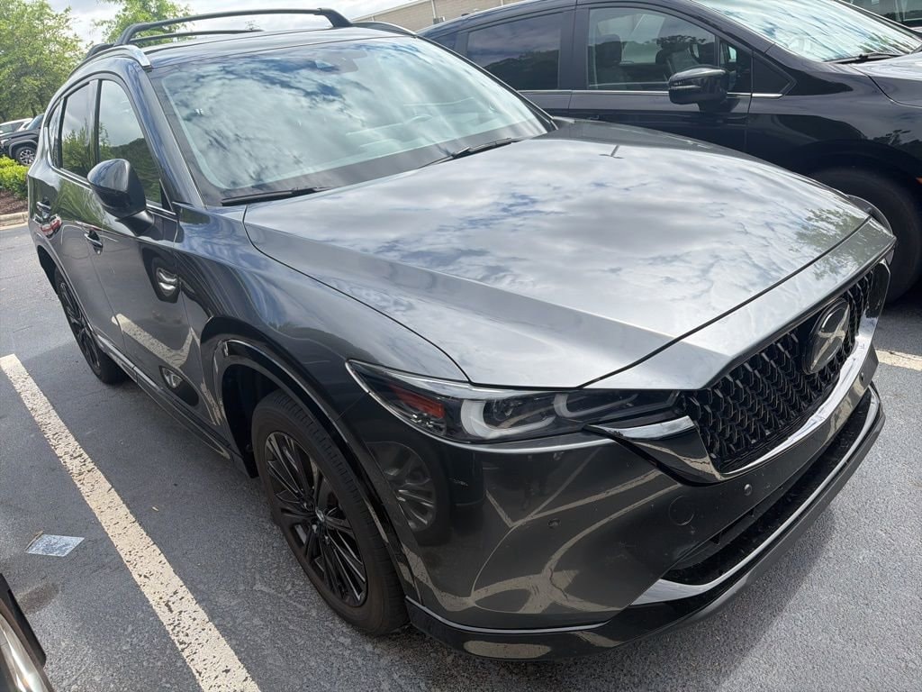 Clean CARFAX. CARFAX One-Owner. Machine Gray Metallic 2025 Mazda CX-5 2.5 Turbo Premium AWD 6-Speed Automatic 2.5L I4 Clean Carfax 1 Owner/No Accident Vehicle, LOCAL TRADE IN, BACK OF CAMERA, LEATHER, HEATED SEATS, SUNROOF, ALL WHEEL DRIVE, SMART KEY W PUSH BUTTON START, LANE DEPARTURE ALERT W STEERING ASSIST, APPLE CARPLAY & ANDROID AUTO, BLIND SPOT MONITOR, HOMELINK GARAGE DOOR TRANSMITTER, 10 Speakers, ABS brakes, Air Conditioning, AppLink/Apple CarPlay and Android Auto, Auto High-beam Headlights, Auto-dimming Rear-View mirror, Automatic temperature control, Electronic Stability Control, Four wheel independent suspension, Front Center Armrest w/Storage, Front dual zone A/C, Fully automatic headlights, Heads-Up Display, Heated front seats, Heated rear seats, Heated/Ventilated Front Bucket Seats, Leather steering wheel, Memory seat, Power driver seat, Power Liftgate, Power moonroof, Power steering, Power windows, Radio Broadcast Data System Program Information, Rear Bumper Guard, Rear window defroster, Remote keyless entry, Roof Rails & Cross Bars Package, Steering wheel mounted audio controls, Telescoping steering wheel, Traction control, Ventilated front seats, Wheels: 19 x 7J Aluminum Alloy.