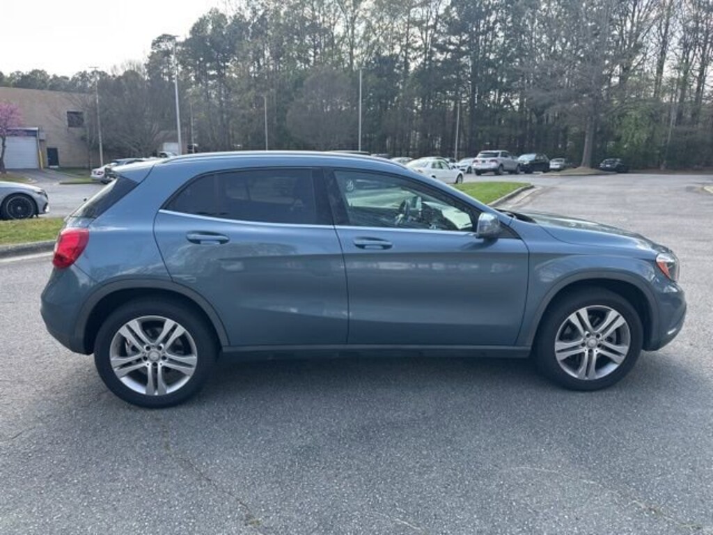 Blue Metallic 2015 Mercedes-Benz GLA GLA 250 2.0L I4 DI Turbocharged 18" Twin 5-Spoke Alloy Wheels, 4-Wheel Disc Brakes, 8 Speakers, ABS brakes, Air Conditioning, AM/FM radio, AM/FM/CD/MP3 Audio System, Brake assist, Bumpers: body-color, CD player, Child-Seat-Sensing Airbag, Delay-off headlights, Driver door bin, Driver vanity mirror, Dual front impact airbags, Dual front side impact airbags, Electronic Stability Control, Emergency communication system, Four wheel independent suspension, Front anti-roll bar, Front Bucket Seats, Front Center Armrest, Front fog lights, Front Power Seats, Front reading lights, Fully automatic headlights, Heated door mirrors, Illuminated entry, Knee airbag, Low tire pressure warning, MB-Tex Upholstery, Memory seat, Occupant sensing airbag, Outside temperature display, Overhead airbag, Overhead console, Panic alarm, Passenger door bin, Passenger vanity mirror, Power door mirrors, Power driver seat, Power Liftgate, Power passenger seat, Power steering, Power windows, Premium audio system: COMAND®, Radio data system, Rear anti-roll bar, Rear fog lights, Rear reading lights, Rear seat center armrest, Rear window defroster, Remote keyless entry, Roof rack: rails only, Security system, Speed control, Speed-sensing steering, Split folding rear seat, Spoiler, Steering wheel mounted audio controls, Tachometer, Telescoping steering wheel, Tilt steering wheel, Traction control, Trip computer, Turn signal indicator mirrors, Weather band radio.