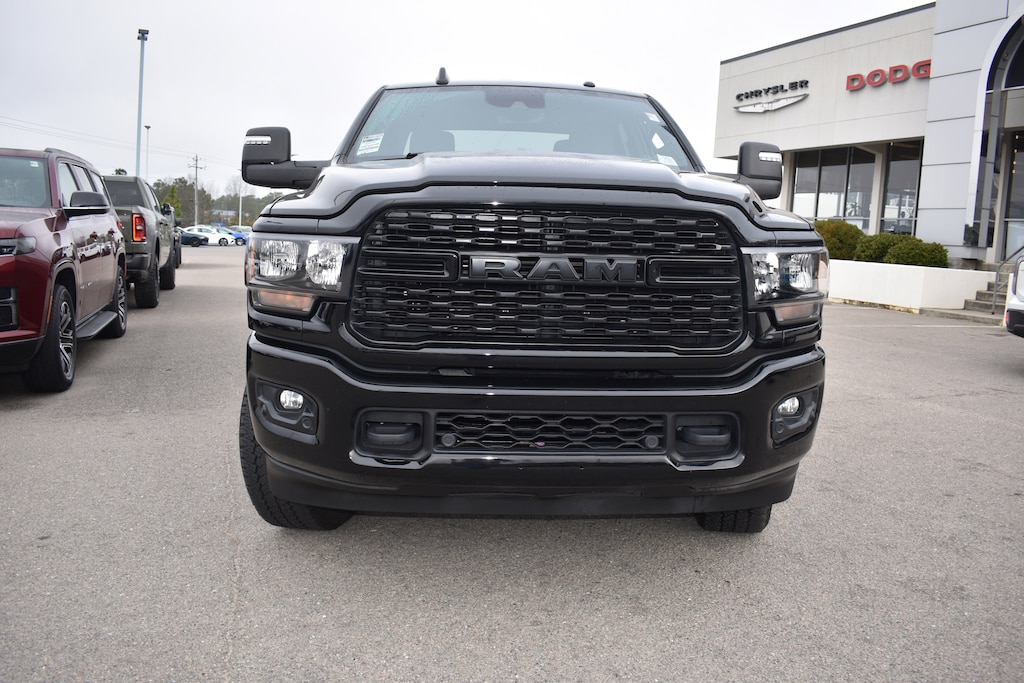 Clean CARFAX. CARFAX One-Owner. Diamond Black Crystal Pearlcoat 2024 Ram 2500 Big Horn 4WD 8-Speed Automatic 6.4L V8 12" Touchscreen Display, 2 Way Rear Headrest Seat, 2nd Row In Floor Storage Bins, 3.73 Axle Ratio, 4 Way Front Headrests, 4-Wheel Disc Brakes, 40/20/40 Split Bench Seat, 4G LTE Wi-Fi Hot Spot, 6 Speakers, 8.4" Touchscreen Display, 9 Alpine Speakers w/Subwoofer, ABS brakes, Active Noise Control System, Adaptive Cruise Control w/Stop, Adaptive Steering System, Air Conditioning, Air Conditioning ATC w/Dual Zone Control, Alexa Built-In, All R1 High Radios, All Radio Equipped Vehicles, Anti-Spin Differential Rear Axle, Apple CarPlay, Auto High Beam Headlamp Control, Auto Power-Folding Mirrors, Auto-Dimming Rear-View Mirror, Bed Utility Group, Big Horn IP Badge, Black Exterior Mirrors, Black Exterior Truck Badging, Black Headlamp Bezels, Black Interior Accents, Black Ram Head Tailgate Badge, Black Tail Lamp Bezels, Black Wheel Center Hub, Blind Spot & Cross Path Detection, Bluetooth Handsfree Phone & Audio, Body Color Door Handles, Body Color Grille Surround, Brake assist, Bumpers: chrome, Center Hub, Center Stack Storage Drawer, Cloth 40/20/40 Bench Seat, Compass, Connected Travel & Traffic Services, Connectivity - US/Canada, Delay-off headlights, Disassociated Touchscreen Display, Dual front impact airbags, Dual front side impact airbags, Dual Glove Boxes, Electronic Stability Control, Electronically Controlled Throttle, Emergency communication system: SiriusXM Guardian, Exterior Mirrors Courtesy Lamps, Exterior Mirrors w/Heating Element, Exterior Mirrors w/Supplemental Signals, Foam Bottle Insert (Door Trim Panel), Footwell Courtesy Lamp, For Details, Visit DriveUconnect.com, For More Info, Call 800-643-2112, Forward & Reverse Utility Lights, Front anti-roll bar, Front Armrest w/Cupholders, Front Center Seat Cushion Storage, Front Fog Lamps, Front Seat Back Map Pockets, Full Speed Forward Collision Warning Plus, Fully automatic headlights, Global Telematics Box Module (TBM), Gloss Black Nostrils/MIC Black Grille, Glove Box Lamp, Google Android Auto, GPS Antenna Input, GPS Navigation, HD Radio, Heated door mirrors, Illuminated entry, Integrated Center Stack Radio, Integrated Voice Command w/Bluetooth, Lane Keep Assist, Leather Wrapped Steering Wheel, LED Bed Lighting, LED Tail Lamps, Level 1 Equipment Group, Locking Lower Glove Box, Low tire pressure warning, Manual Adjust 4-Way Driver Seat, Manual Adjust 4-Way Front Passenger Seat, Manufacturer's Statement of Origin, Mirror Running Lights, MOPAR Deployable Bed Step, MOPAR Spray In Bedliner, Night Edition, Occupant sensing airbag, Off-Road Information Pages, Outside temperature display, Overhead airbag, Painted Flat Cab-Length Side Steps, Painted Front Bumper, Painted Rear Bumper, Panic alarm, ParkSense Front/Rear Park Assist System, ParkView Rear Back-Up Camera, Power 2-Way Driver Lumbar Adjust, Power Adjust 8-Way Driver Seat, Power Adjust Mirrors, Power Adjustable Convex Aux Mirrors, Power door mirrors, Power Heated Fold Telescope Mirrors, Power steering, Power Telescoping Mirrors, Power windows, Premium Cloth 40/20/40 Bench Seat, Premium Cloth 40/20/40 Bench Seat (DISC), Protection Group, Quick Order Package 2GZ Big Horn, Radio data system, Radio: Uconnect 5 Nav w/12.0" Display, Radio: Uconnect 5 W w/8.4" Display (A62), Rain Sensitive Windshield Wipers, Rear 60/40 Folding Seat, Rear anti-roll bar, Rear Dome w/On/Off Switch Lamp, Rear Folding Seat, Rear seat center armrest, Rear step bumper, Remote keyless entry, Remote USB Port - Charge Only, Safety Group, Selectable Tire Fill Alert, SiriusXM Radio Service, SiriusXM Satellite Radio, SiriusXM w/360L, Speed control, Steering Wheel Mounted Audio Controls, Storage Tray, Tachometer, Tilt steering wheel, Tip Start, Tow Hooks, Traction control, Trailer Tow Pages, Trip computer, Turn signal indicator mirrors, Variably intermittent wipers, Voltmeter, Wheels: 18" x 8.0" Polished Aluminum, Wheels: 20" x 8.0" Black Painted A