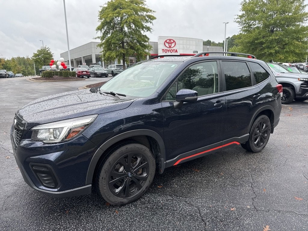 Clean CARFAX. CARFAX One-Owner. Dark Blue Pearl 2019 Subaru Forester Sport AWD Lineartronic CVT 2.5L 4-Cylinder DOHC 16V VVT Clean Carfax 1 Owner/No Accident Vehicle, LOCAL TRADE IN, BACK UP CAMERA, HEATED SEATS, PANORAMIC SUNROOF, BLIND SPOT MONITOR, ALL WHEEL DRIVE, SMART KEY W PUSH BUTTON START, APPLE CARPLAY & ANDROID AUTO, 1-OWNER, NO ACCIDENTS, MUST SEE!, ABS brakes, Air Conditioning, All-Weather Floor Liners, Auto High-beam Headlights, Auto-Dimming Exterior Mirror w/Approach Lighting, Auto-Dimming Mirror w/Compass & HomeLink, Blind Spot Detection w/Rear Cross Traffic Alert, BSD & Rev Auto Brake & harman kardon & Pwr Rr Gate, Cargo Net, Electronic Stability Control, Four wheel independent suspension, Fully automatic headlights, harman kardon 576W Amp & Speaker System, Heated Front Bucket Seats, Leather Shift Knob, Outside temperature display, Popular Package #2, Power driver seat, Power moonroof: Panoramic, Power Rear Gate, Power steering, Power windows, Radio: Subaru Starlink 8.0 Multimedia Plus System, Rear Bumper Cover, Rear window defroster, Reverse Automatic Braking System (RAB), Steering wheel mounted audio controls, Traction control, Turn signal indicator mirrors, Wheels: 18 x 7.0J Black Finish Aluminum Alloy.