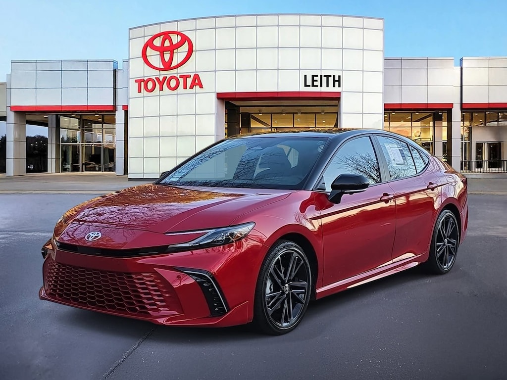 Priced below KBB Fair Purchase Price! Clean CARFAX. CARFAX One-Owner. Supersonic Red/Midnight Black Metallic 2025 Toyota Camry XSE FWD eCVT 2.5L 4-Cylinder 16V DOHC Clean Carfax 1 Owner/No Accident Vehicle, LOCAL TRADE IN, BACK UP CAMERA, LEATHER, HEATED SEATS, PANORAMIC SUNROOF, SMART KEY W PUSH BUTTON START, PRE-COLLISION SYSTEM W PEDESTRIAN DETECTION, FULL-SPEED RANGE DYNAMIC RADAR CRUISE CONTROL, LANE DEPARTURE ALERT W STEERING ASSIST, BLIND SPOT MONITOR W REAR CROSS-TRAFFIC ALERT, APPLE CARPLAY & ANDROID AUTO, 1-OWNER, NO ACCIDENTS, MUST SEE!, 2.5L 4-Cylinder 16V DOHC, Black w/Leather Seat Trim, 10 Color Head-Up Display, ABS brakes, Air Conditioning, AM/FM radio: SiriusXM, Apple CarPlay/Android Auto, Auto High-beam Headlights, Auto-dimming Rear-View mirror, Automatic temperature control, Digital Key Compatibility, Driver Attention Monitor, Electronic Stability Control, Exterior Parking Camera Rear, Four wheel independent suspension, Front & Rear Parking Assist w/Automatic Braking, Front Cross-Traffic Alert, Front dual zone A/C, Fully automatic headlights, Garage door transmitter: HomeLink, Heated Front Bucket Seats, Heated steering wheel, Lane Change Assist, Leather Shift Knob, Leather steering wheel, Outside temperature display, Panoramic Glass Roof, Panoramic View Monitor, Power driver seat, Power steering, Power windows, Premium Plus Package, Radio: Toyota Audio Multimedia w/12.3 Touchscreen, Radio: Toyota Audio Multimedia w/JBL, Rear Cross-Traffic Braking, Rear seat center armrest, Rear window defroster, Remote keyless entry, Steering wheel mounted audio controls, Telescoping steering wheel, Tilt steering wheel, Traction control, Traffic Jam Assist, Turn signal indicator mirrors, Ventilated Front Seats, Wheels: 19 Smoke Gray & Black-Finished Alloy.